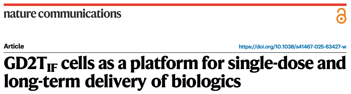 清华大学基础医学院彭敏团队2025年8月29日在《Nature Communications》发表题为“GD2TIF cells as a platform for single-dose and long-term delivery of biologics” 的研究论文,报道了长寿命CAR T细胞作为一种新型药物体内递送平台。长寿命CAR T细胞在动物模型中实现了肥胖和糖尿病治疗药物GLP-1(半衰期仅2~5分钟)的长期稳定递送,仅需单次输入即维持现肥胖和糖尿病的长期缓解,为需要终身治疗的慢性疾病提供了治愈的潜在可能性。